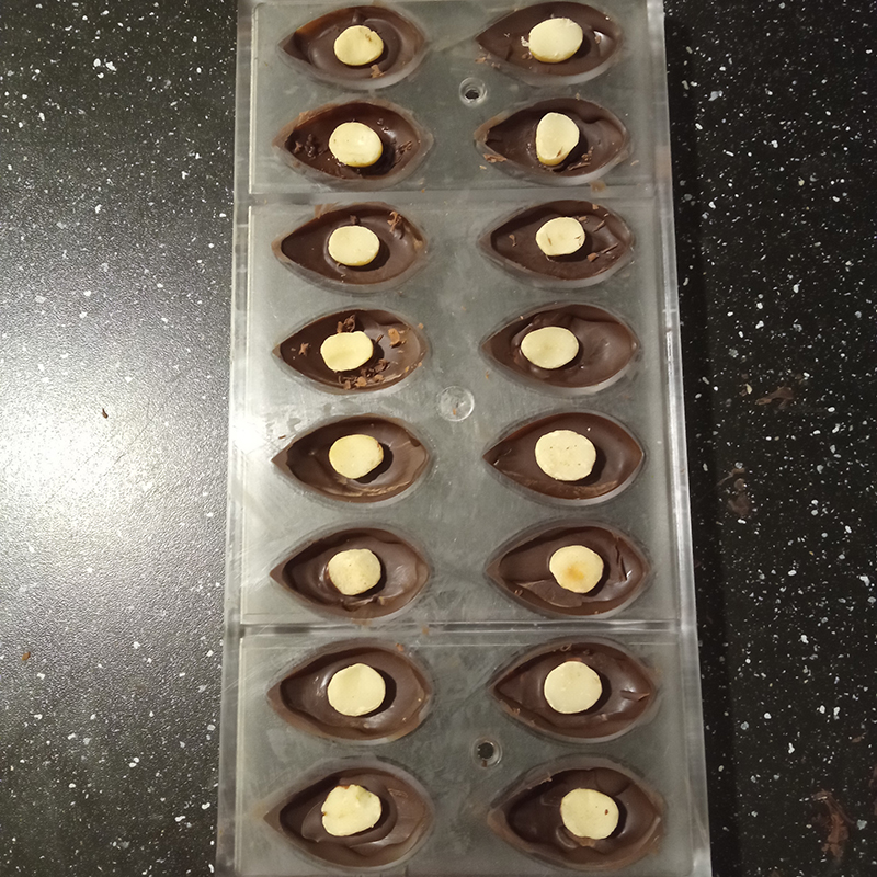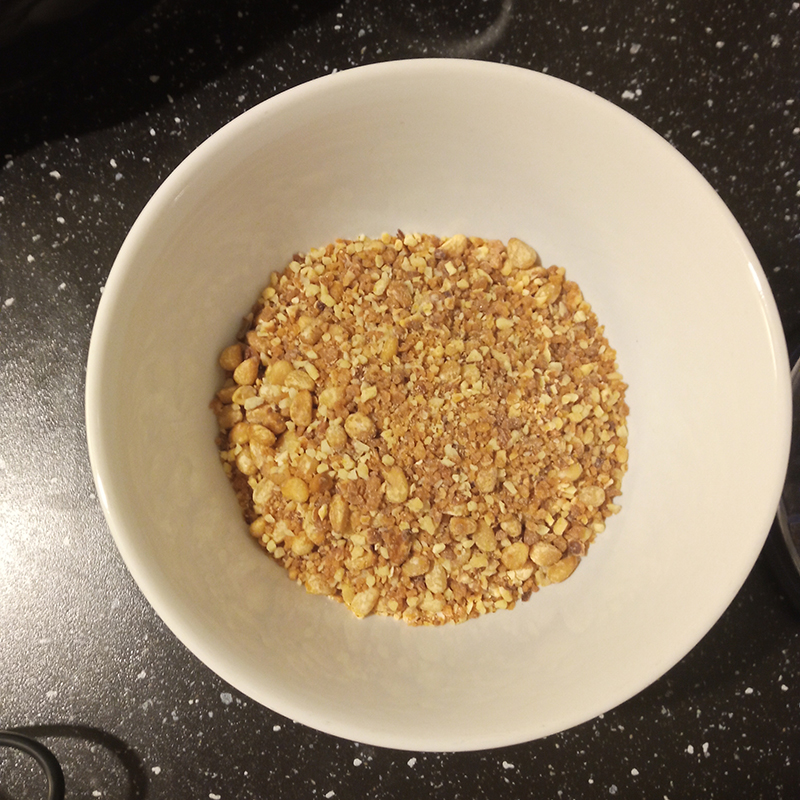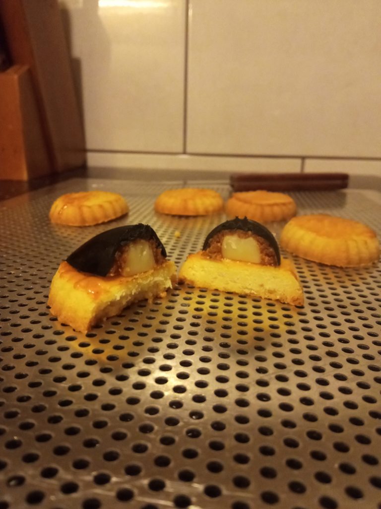 Chocolate shortbread, macadamia nuts, praline, grilled pine nuts.