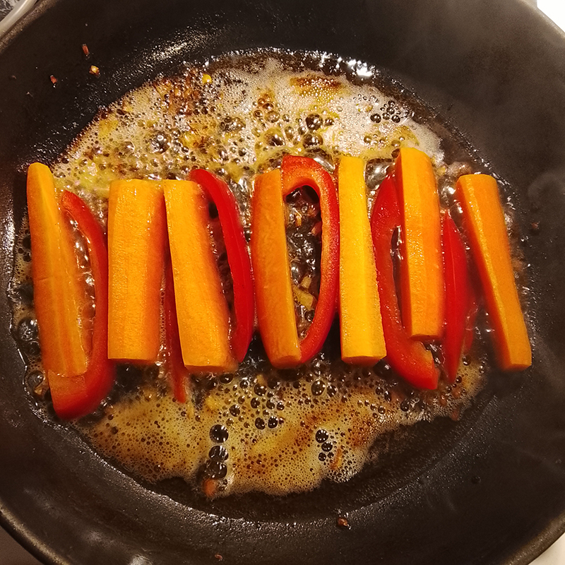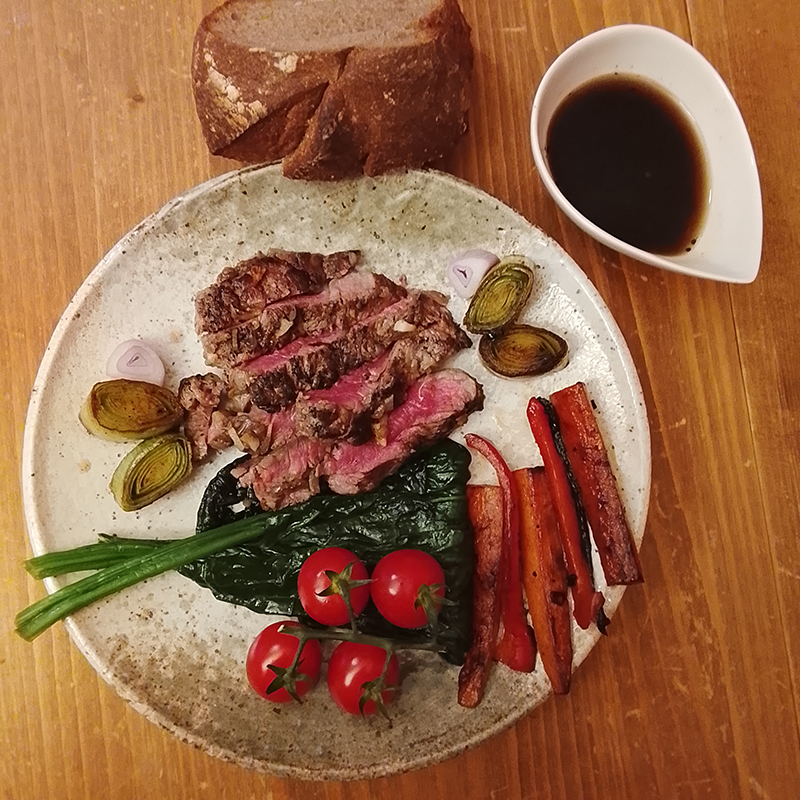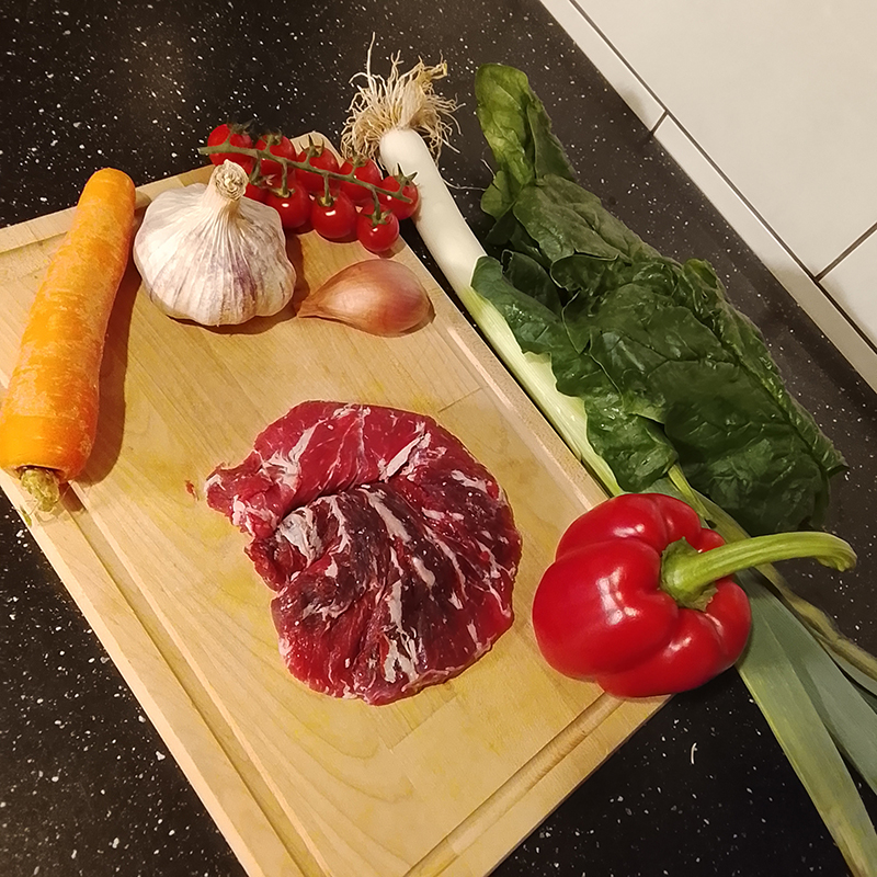Araignée de bœuf, poireau, épinard, échalote, ail, carotte, poivron, tomates cerises.