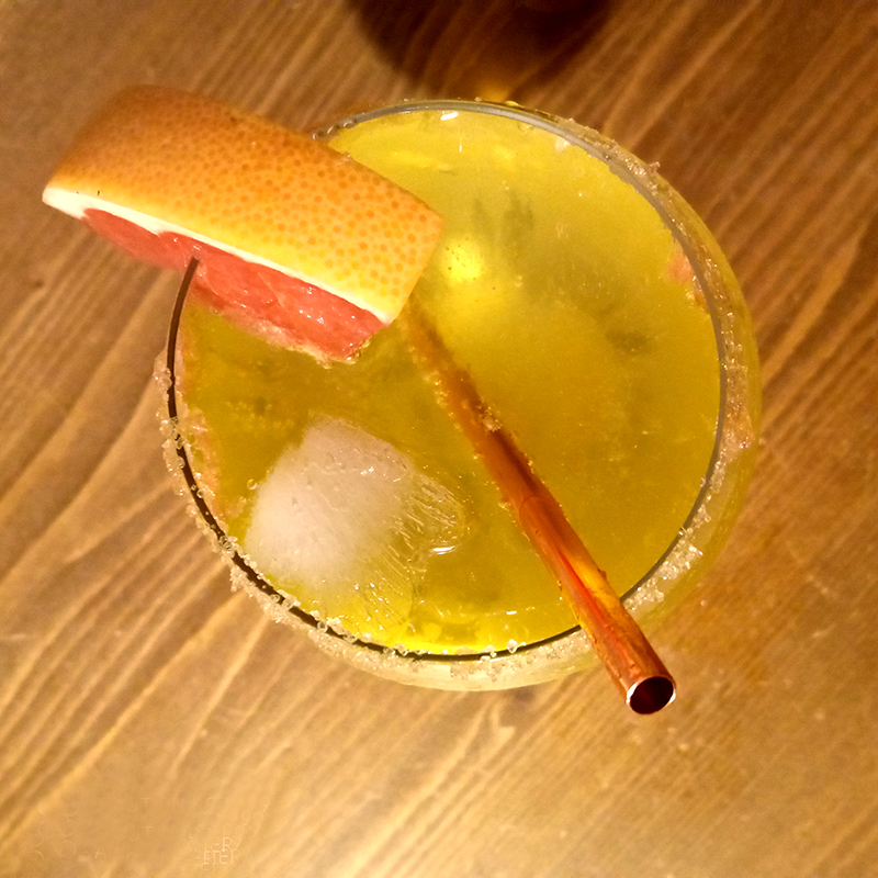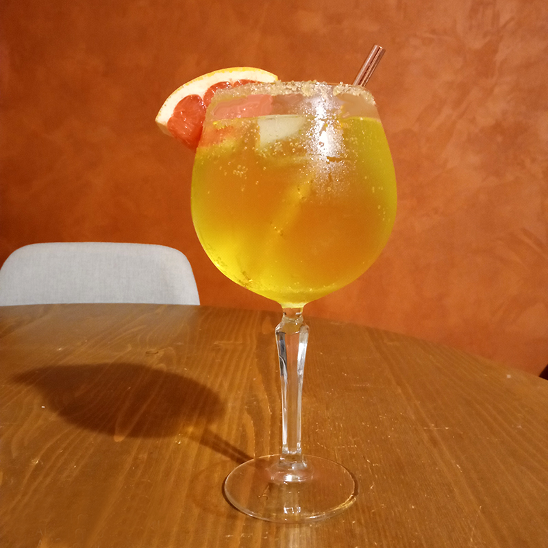 (According to a recipe by Pierre Scherrens – Toulouse ~1989) 4 cl Avèze~30 cl Tonic – Hysope (~1½ bottle)a generous pinch of brown sugargrapefruit for garnish