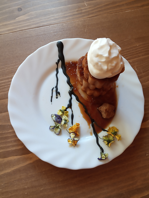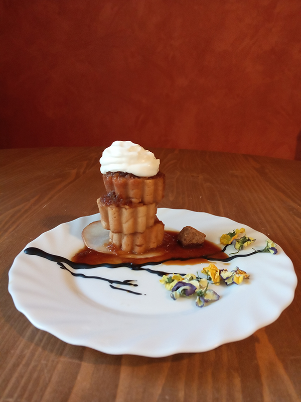 - garnish : thin pear slices, chocolate, edible dried flowers