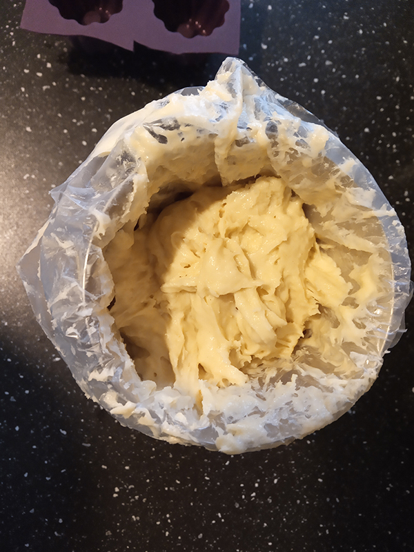 - Savarin pastry soaked with Cognac + sugar syrup [Cognac, Amami black sugar, lemon zest]