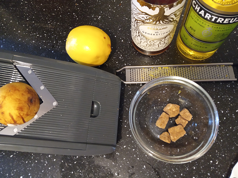 Transposition inspired by the 1925 cocktail recipe called “Champs-Élysées” – page 28 of Nina Toye and Arthur H. Adair’s book.