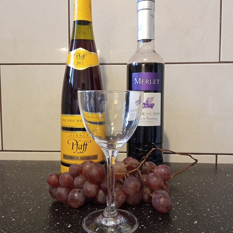 2 cl crème de cassis – MerletTop up with Pinot Noir – Pfaff 2017 Cuvée des DominicainsGarnish : Red Globe grape
