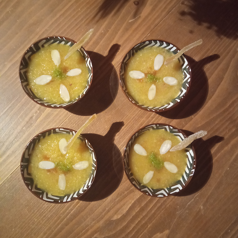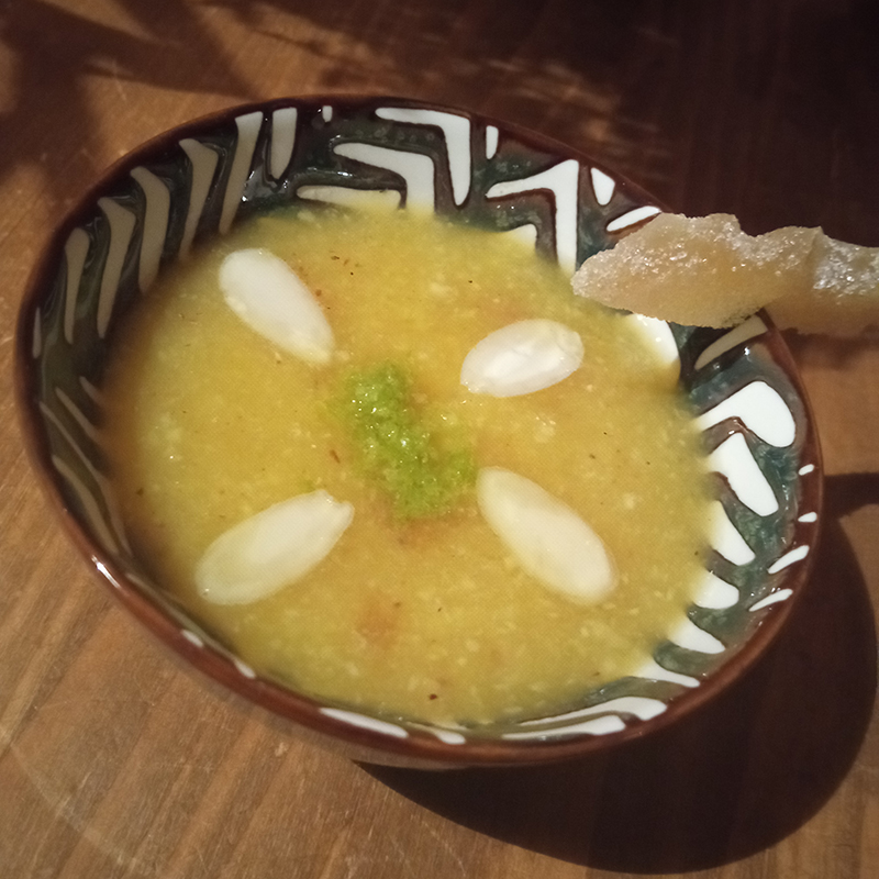 A pineapple compote, deconstruction of one of my favorite cocktails, the “Chartreuse Swizzle” (by Marco Dionysos, 2002). And more particularly one of its ingredients, the Falernum…spices and their flavor compounds…cineole, eugenol, anethole, linalool : noix de muscade, cannelle, clous de girofle, piment de jamaïque, coriandre, carvi, réglisse, galanga, cardamome noire, anis étoilée, amandes effilées, gingembre confit, jus et zeste de citron vert, panela, pineapple, Muyu liqueur Jasmine Verte, Amaretto – Adriatico