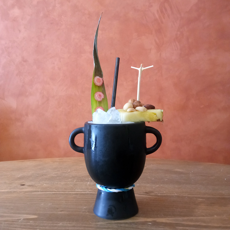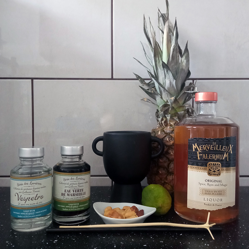 Self-evident variation on the classic “Chartreuse Swizzle” – Marco Dionysos 2002 recipe. 3 cl Eau Verte de Marseille – Ferroni1 cl Vespetro – Ferroni1,5 cl Le Merveilleux Falernum – Ferroni4 cl Pineapple2 cl Lime