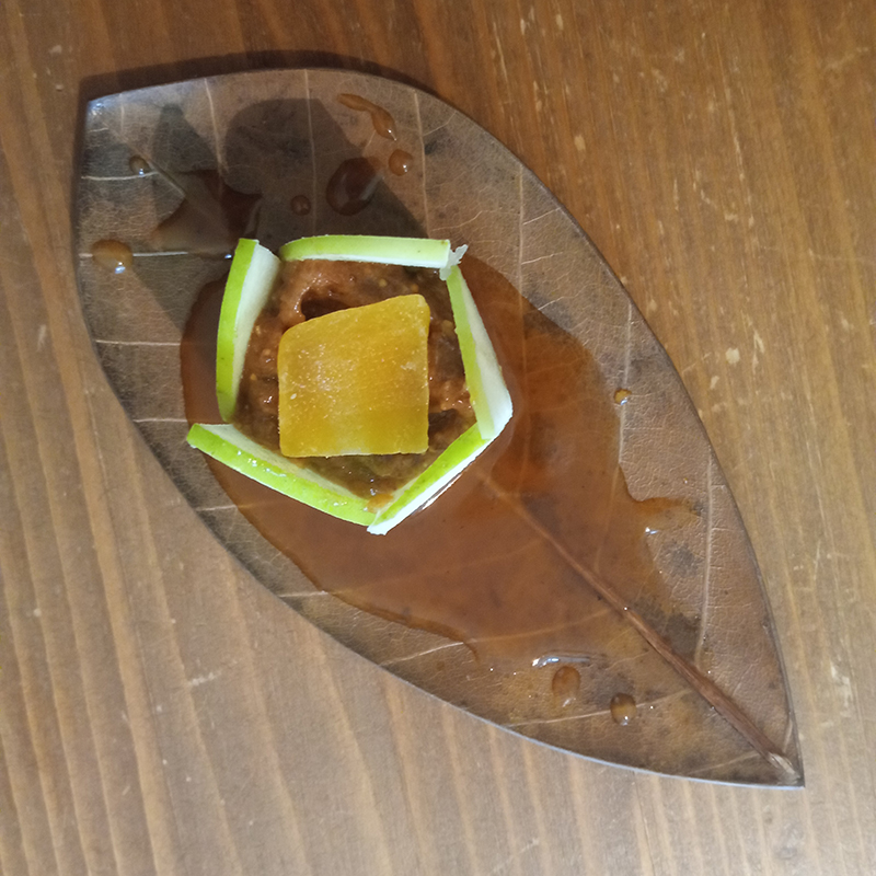 butter, cinnamon leaves, fenugreek, maple syrup, fig-grape honey jam – Famille Mary, Granny Smith apples, lime, dried figs, , dried mango, Colomba Corsica flavored tea, Fino del Puerto Lustau, Dos Maderas rum 5+5