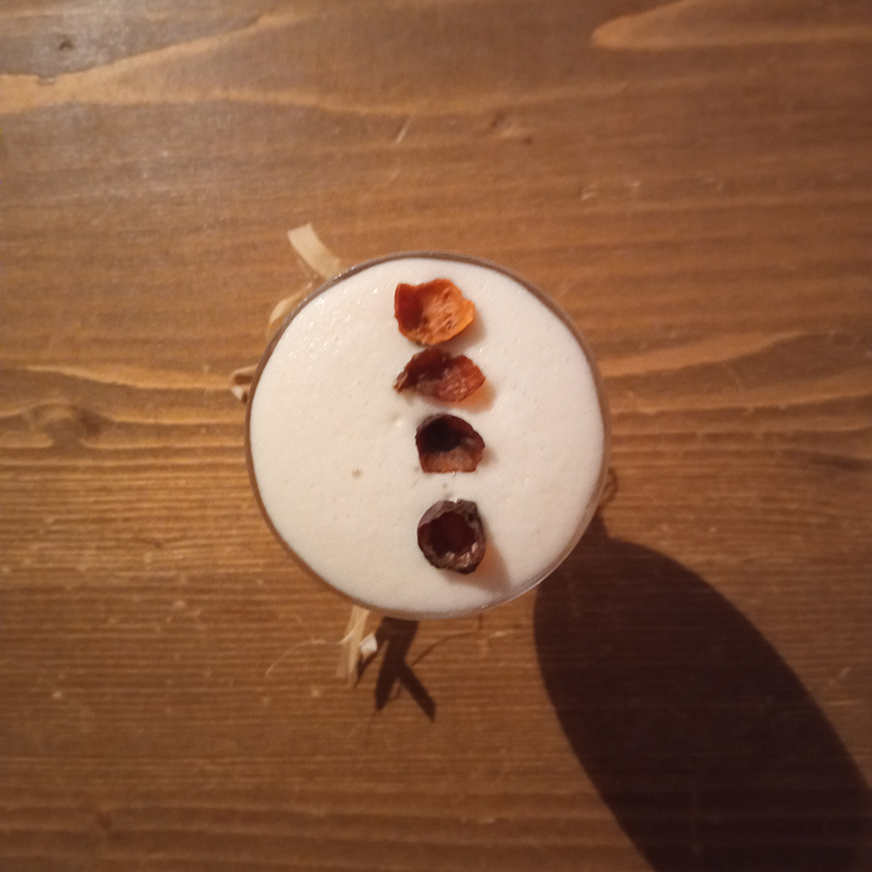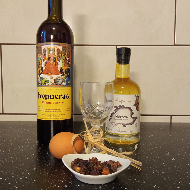 8 cl Hypocras2 cl Méfizot – Liqueur 4 Agrumes (citron, orange, clémentine, pamplemousse)1 eggwhitegarnish : dried cynorhodon