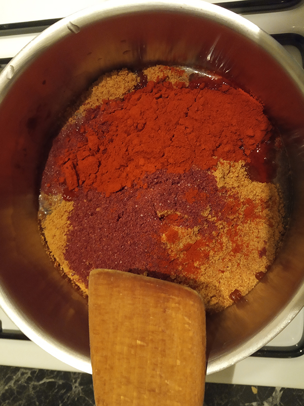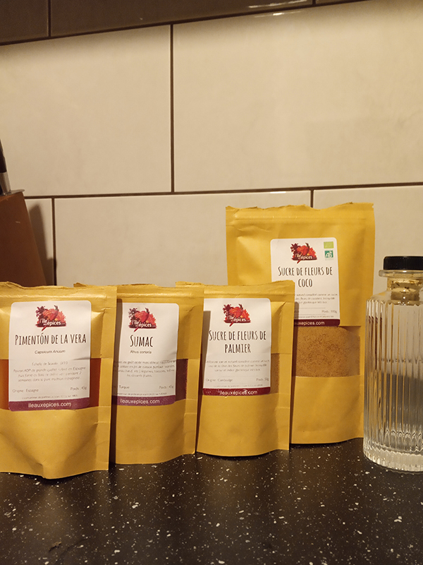 - 0,75 cl homemade sugar syrup with coconut blossom and palm sugars + smoked paprika (Pimentón de la Vera) and Sumac