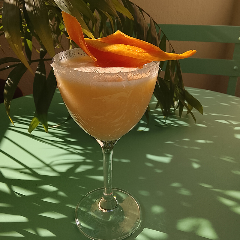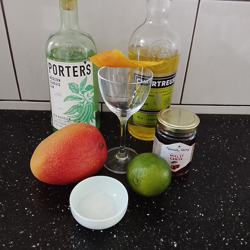 Porter’s Modern Classic Gin, Chartreuse jaune, mangue, lime, miel cerise – Famille Mary, givre de sel