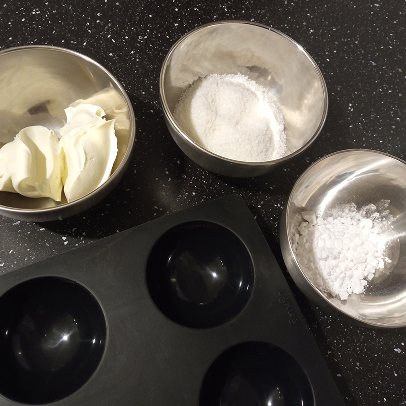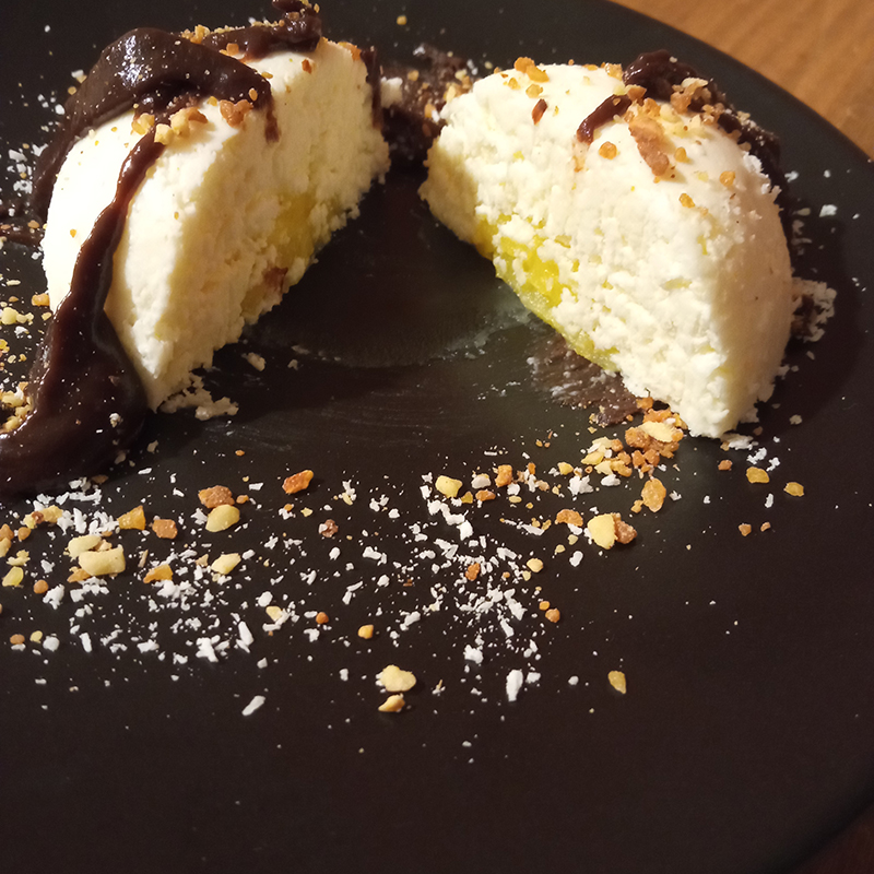 Dome mascarpone + icing sugar + grated coconut,