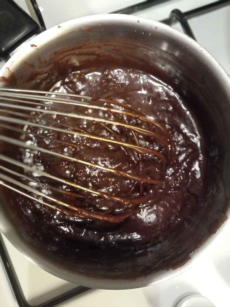 and Brigadeiro sauce (sweetened condensed milk + chocolate powder + butter) + praline/coco sparkle