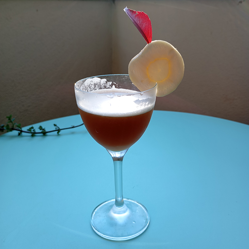 4 cl Honkaku Shōchūa few drops of sweet clover essence (Essence de mélilot)Top up with Makgeolliyuzu pearls at the bottom…