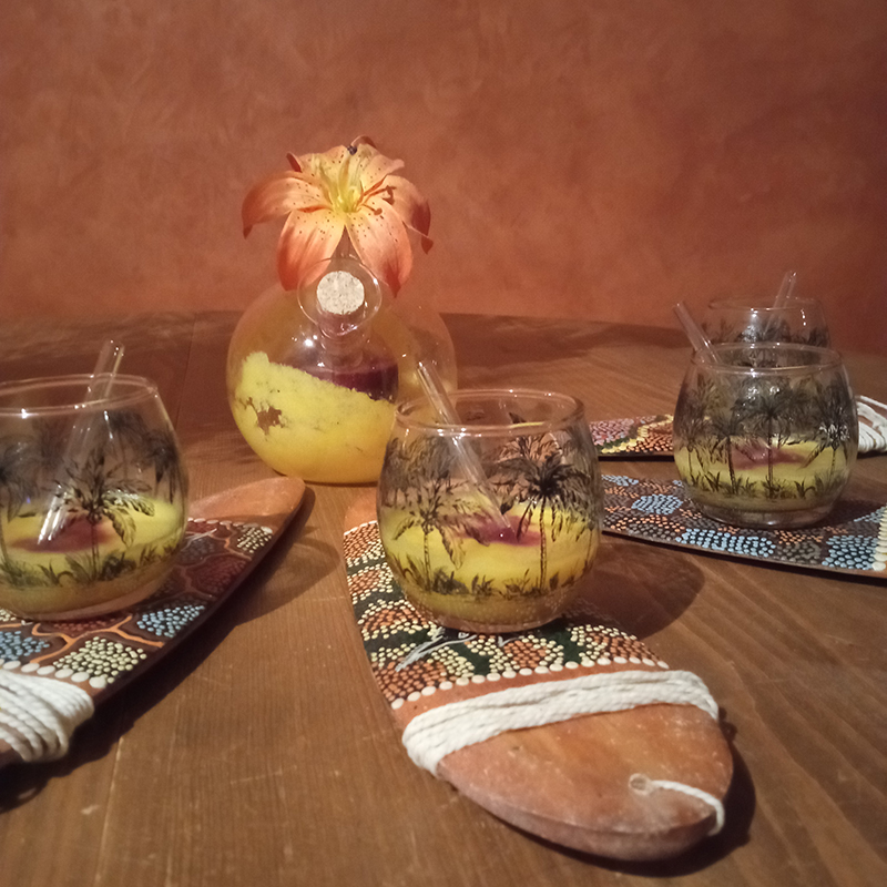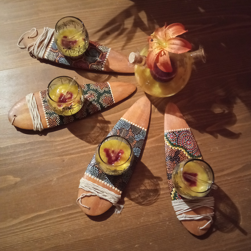 Pineapple, mango, assorted red fruits, cane sugar syrup, verbena, lavender, Brockmans gin, Black Tears Cuban Spiced Rum