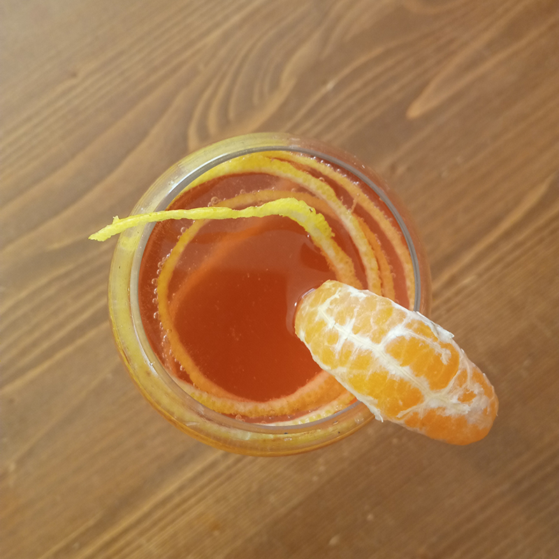 - Garnish : 2 wedges of Clémentine, one squeezed above the glass to release the essences, the other for the decoration.