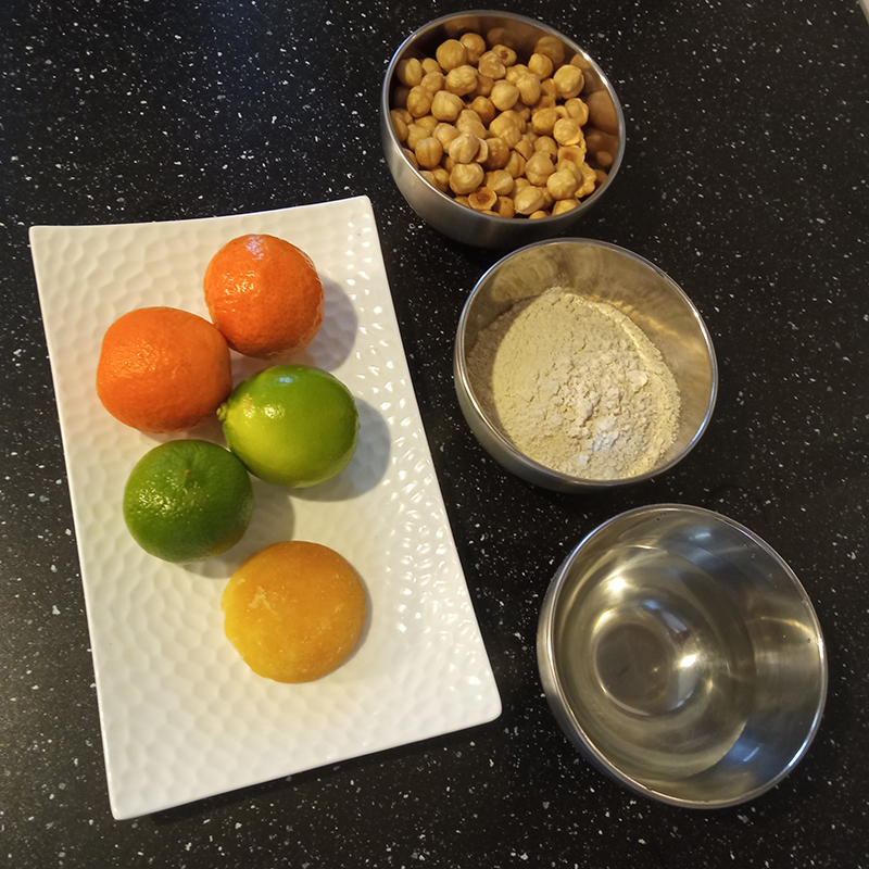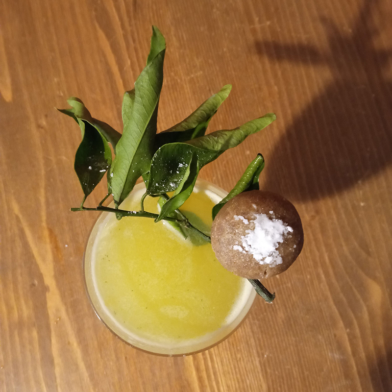 - garnish : kind of Biscotin (lime, clémentine, palm sugar, chestnut flour, water, hazelnut, icing sugar)