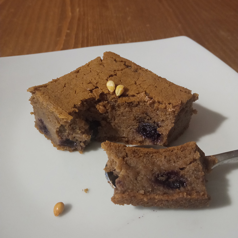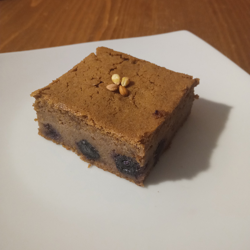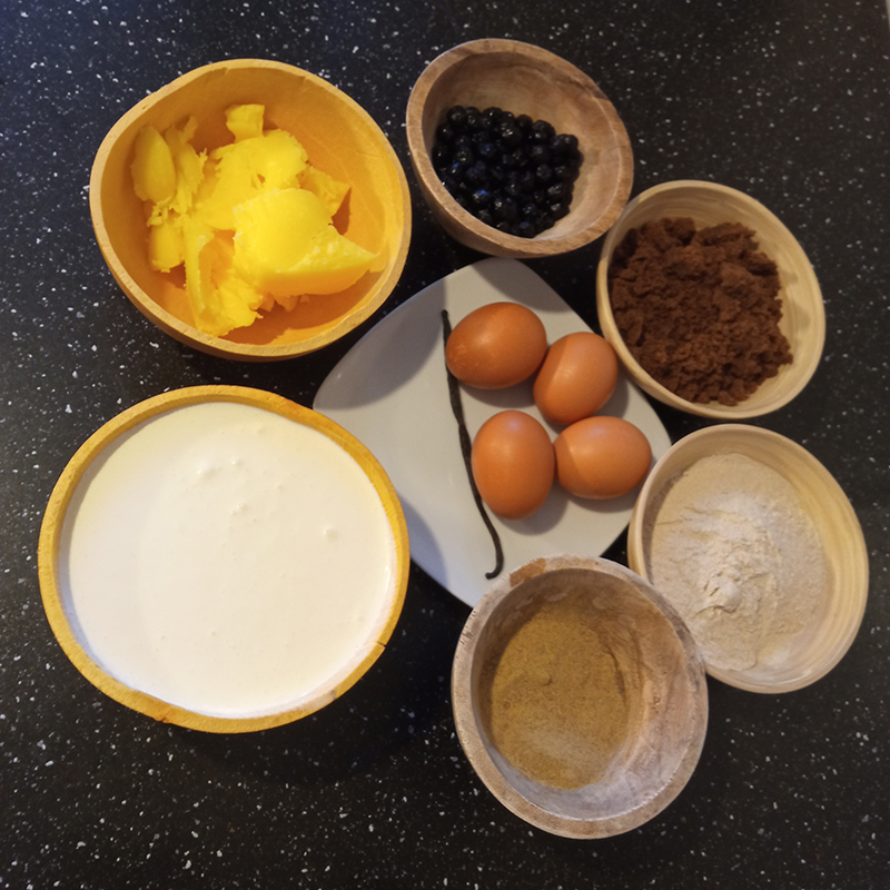 teff flour, triphala (bibhitaki, amalaki et haritaki), aronia berries, mahaleb, vanilla, muscovado sugar, ghee, whipping cream, egg