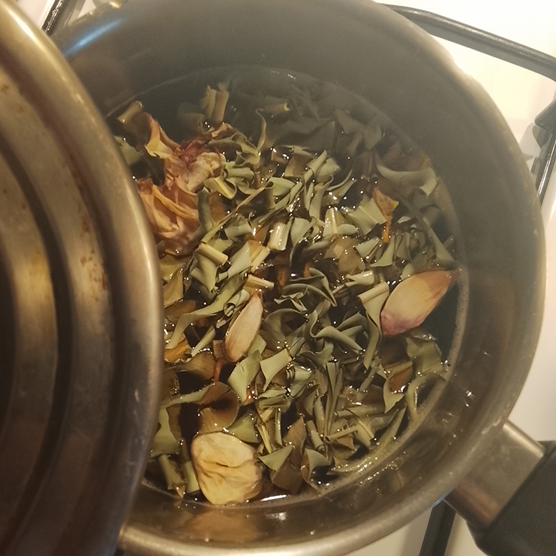 Pakchoï, shiitake, oignon, ail, gingembre, curcuma, coriandre, poivre, citron vert, choux rouge, sauce soja infusée à l'ail noir, tranche de…