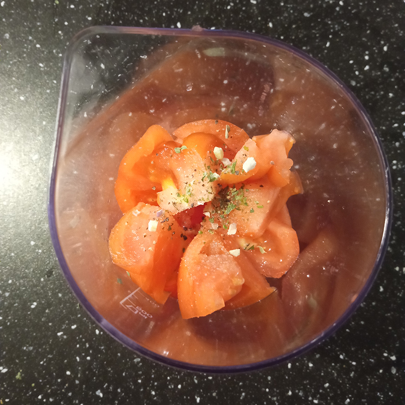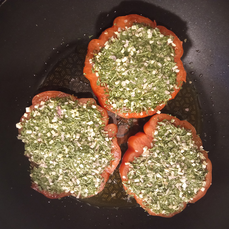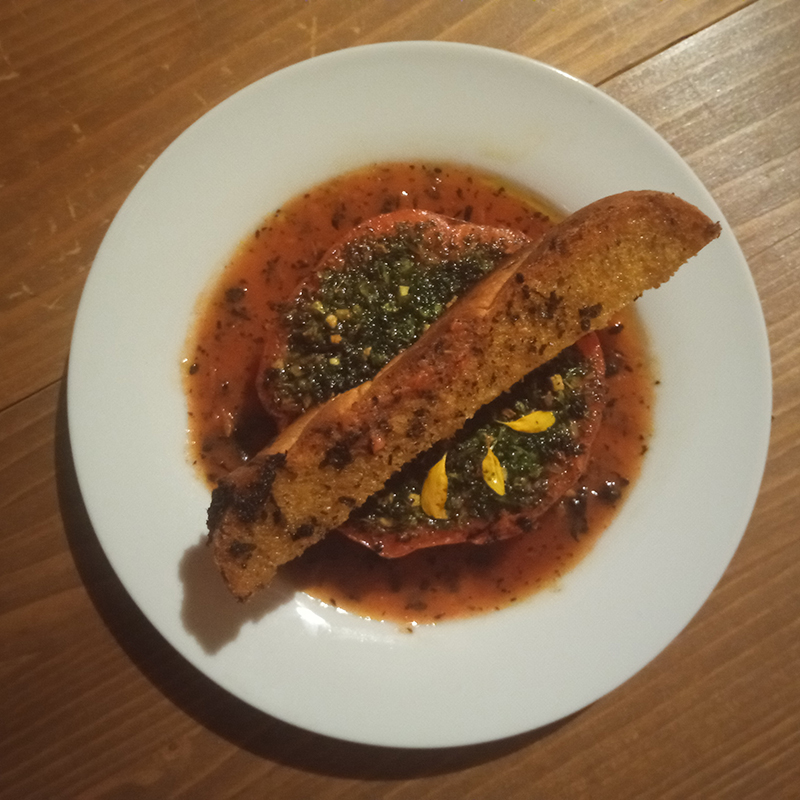 Pain, Tomate Marmande, Persillade, poivre, sel, sucre, huile d’olive “La Française Intense”