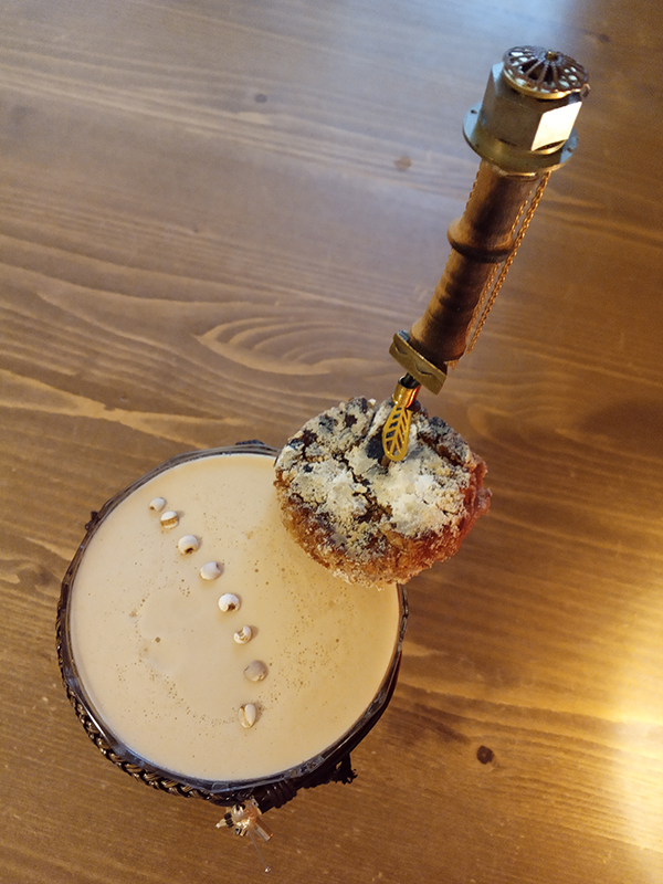 - garnish : larmes de Job (Yi Yi Ren) & a kind of homemade cassave [ cassava flour (farine de manioc), cinnamon powder, lemon zest, cane sugar, coconut puree (Monin) + sprinkled with chestnut flour ]
