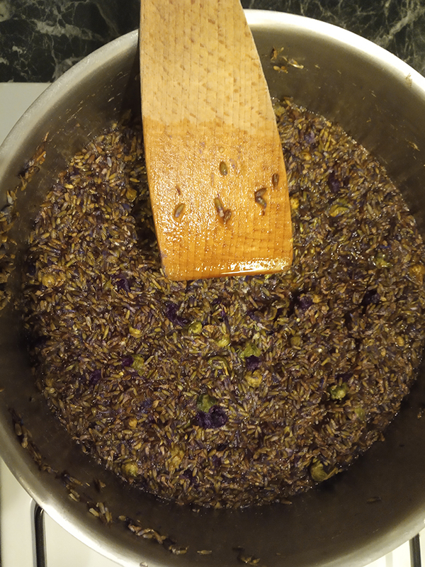 - 0,5 cl homemade honey syrup with Miel de lavande du Luberon – Famille Mary & a decoction of Lavender, Cornflower, and Mallow (Lavande, Bleuet, et Mauve)