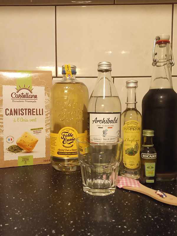 - garnish with Canistrelli à l’anis vert – Biscuiterie Castellane soaked in a drop of Ricard “plants”